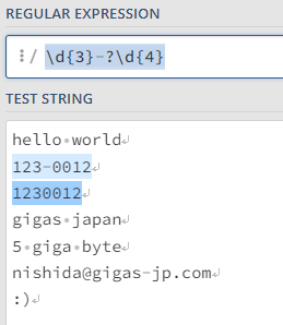 郵便番号、ハイフンはあってもなくてもマッチさせる