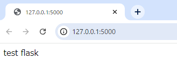 にブラウザでアクセスしたところ、以下のように「test flask」が正常に表示されました。