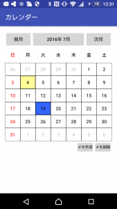 と言っても、日付の状態に応じた色の変更、メモ機能くらいですが。